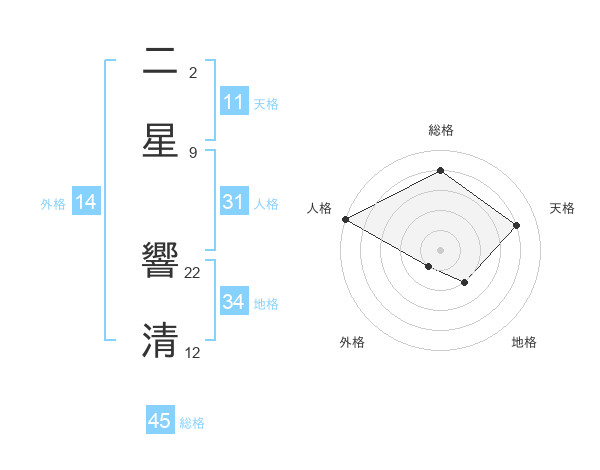 二星 響清さんの総格は45画の4点!