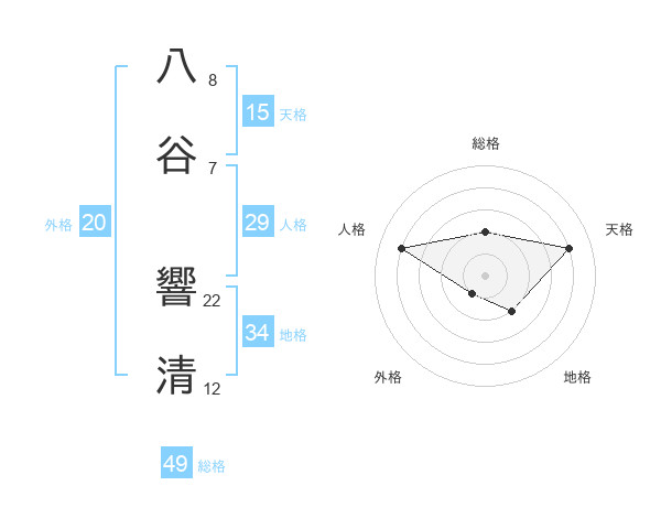 八谷 響清さんの総格は49画の2点!