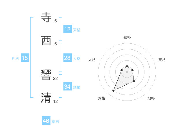 寺西 響清さんの総格は46画の1点!