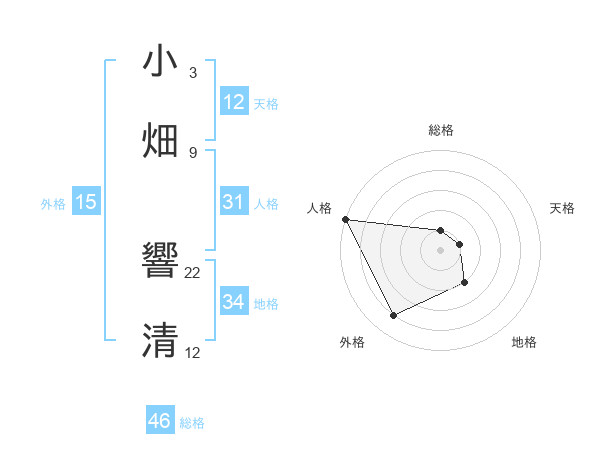 小畑 響清さんの天格は12画の1点!