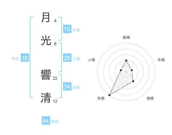 月光 響清さんの総格は44画の2点!