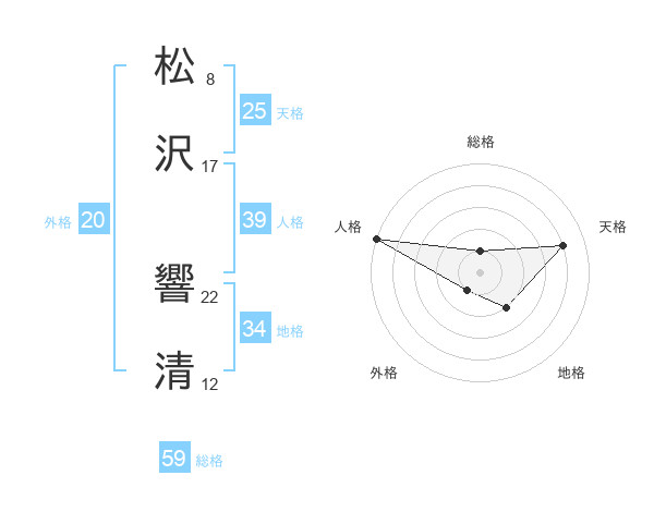 松沢 響清さんの総格は59画の1点!