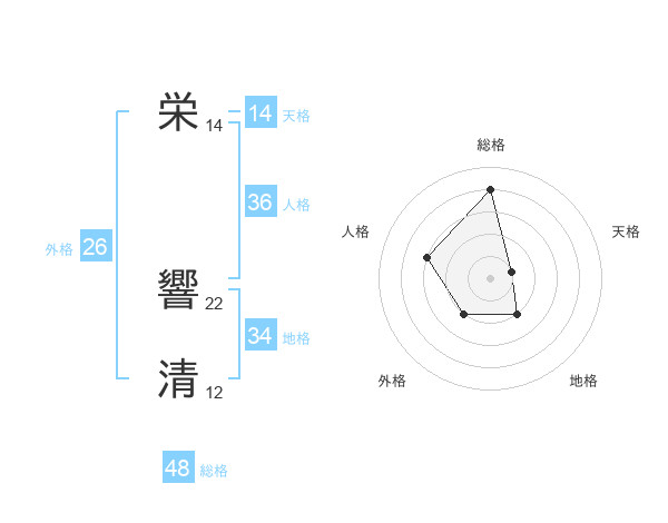 栄 響清さんの総格は48画の4点!