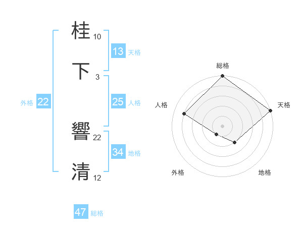 桂下 響清さんの総格は47画の5点!