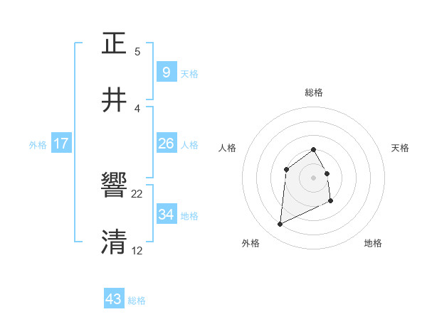 正井 響清さんの総格は43画の2点!