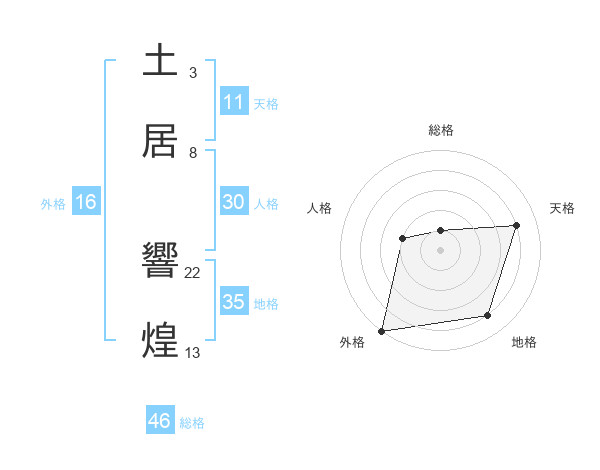土居 響煌さんを姓名の画数から五運を鑑定