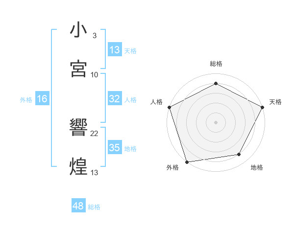 小宮 響煌さんの総格は48画の4点!
