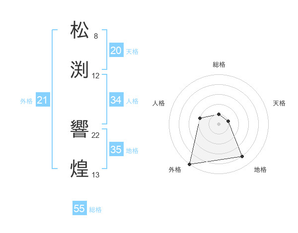 松渕 響煌さんを姓名の画数から五運を鑑定