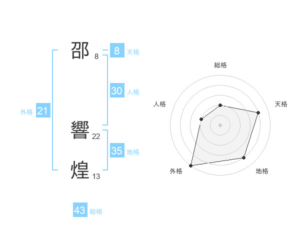 邵 響煌さんの外格は21画の5点!
