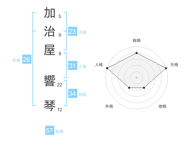 加治屋 響琴さんを姓名の画数から五運を鑑定