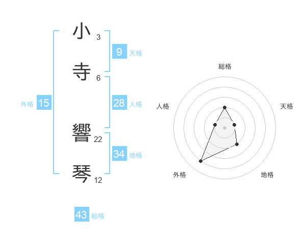 小寺 響琴さんの総格は43画の2点!