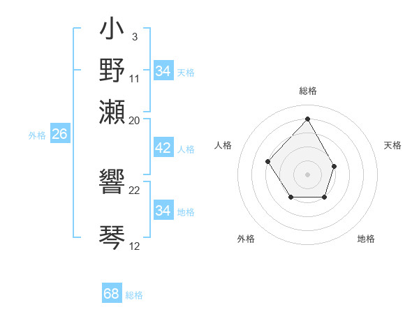 小野瀬 響琴さんを姓名の画数から五運を鑑定