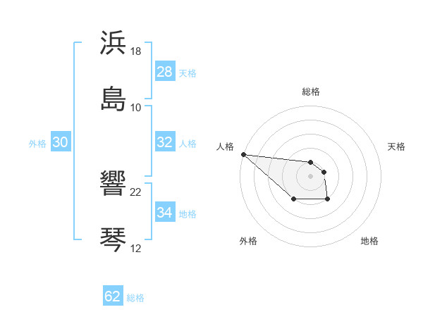 浜島 響琴さんを姓名の画数から五運を鑑定