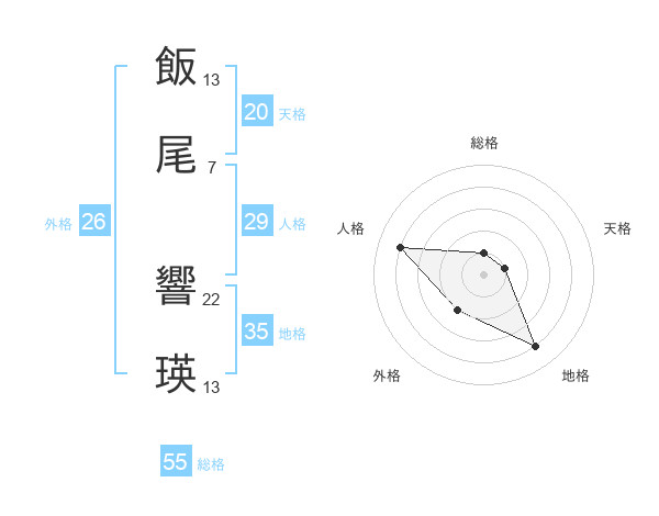 飯尾 響瑛さんの天格は20画の1点!