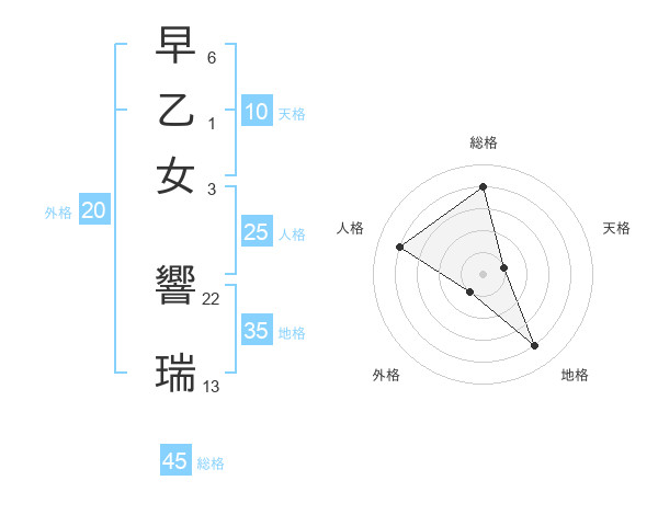 早乙女 響瑞さんの総格は45画の4点!