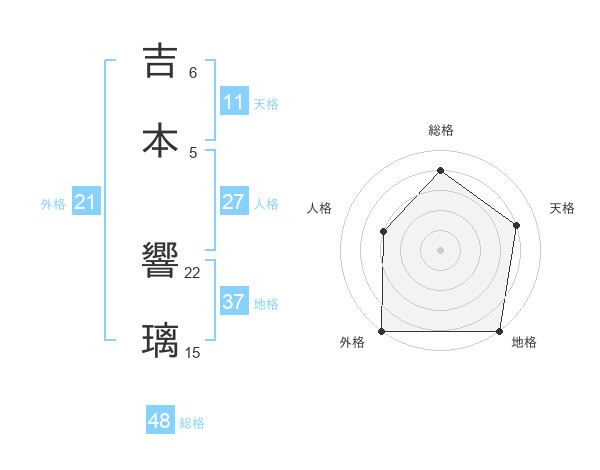 吉本 響璃さんを姓名の画数から五運を鑑定