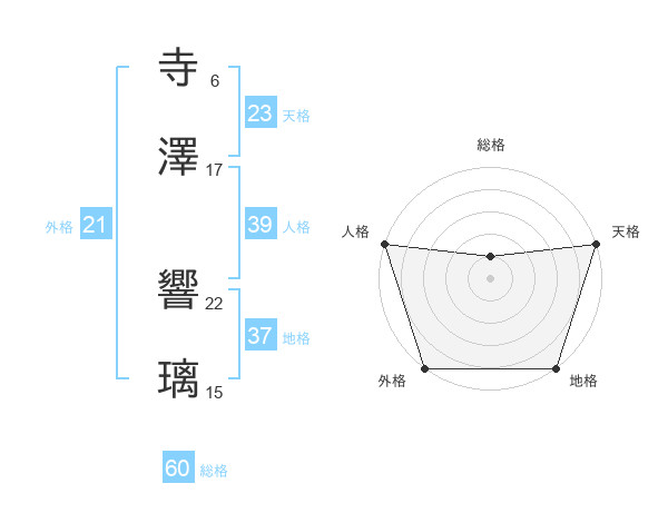 寺澤 響璃さんの外格は21画の5点!