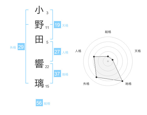 小野田 響璃さんを姓名の画数から五運を鑑定
