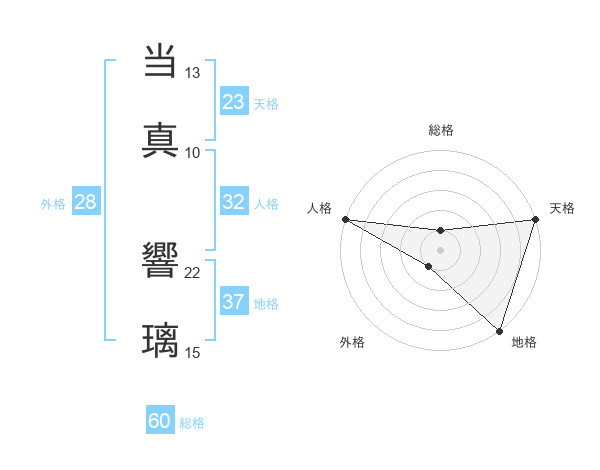 当真 響璃さんの総格は60画の1点!