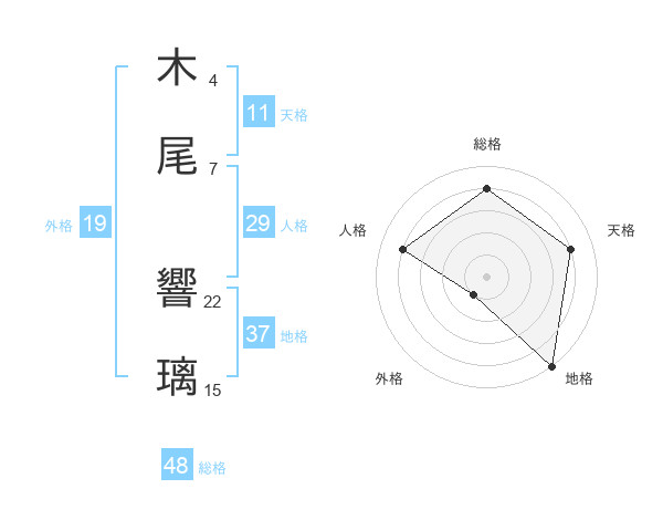 木尾 響璃さんを姓名の画数から五運を鑑定