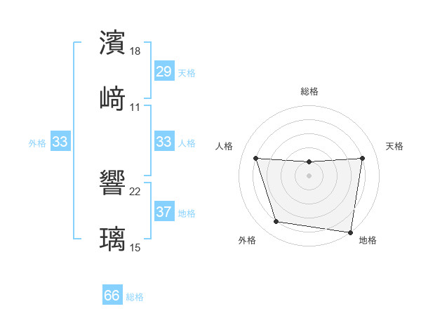 濱﨑 響璃さんの総格は66画の1点!