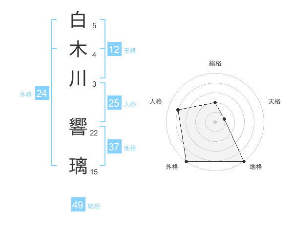 白木川 響璃さんを姓名の画数から五運を鑑定