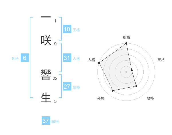 一咲 響生さんの総格は37画の5点!