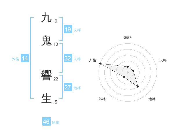 九鬼 響生さんを姓名の画数から五運を鑑定