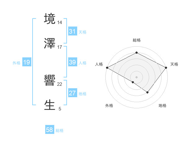 境澤 響生さんの天格は31画の5点!