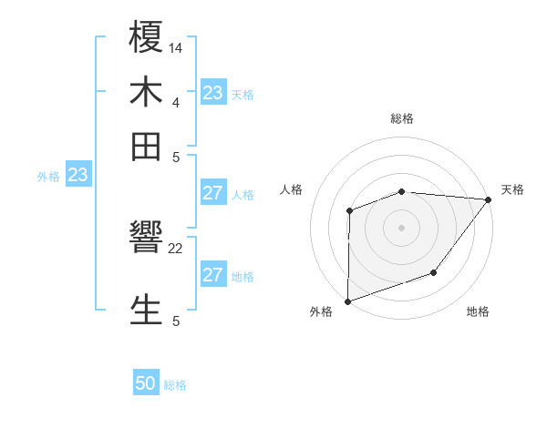 榎木田 響生さんを姓名の画数から五運を鑑定