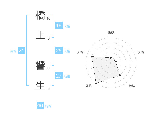 橋上 響生さんの外格は21画の5点!