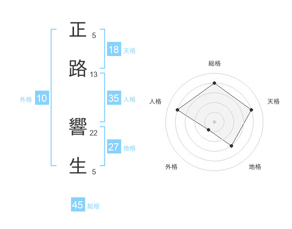 正路 響生さんの総格は45画の4点!