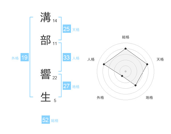 溝部 響生さんの総格は52画の4点!
