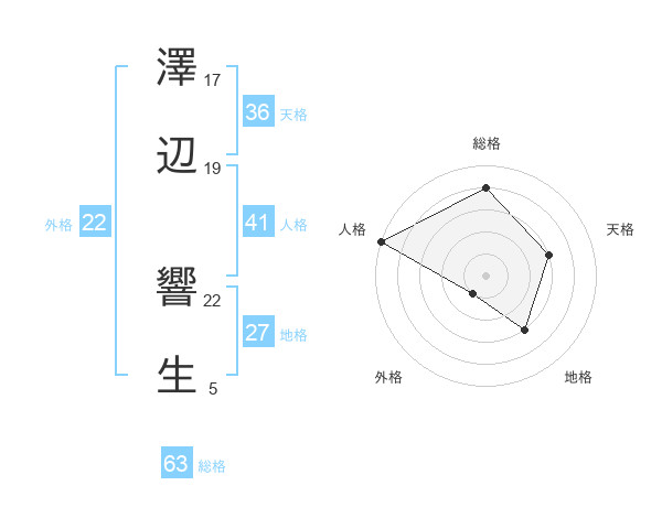 澤辺 響生さんを姓名の画数から五運を鑑定