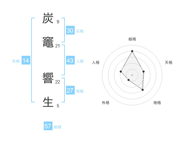 炭竈 響生さんの総格は57画の4点!