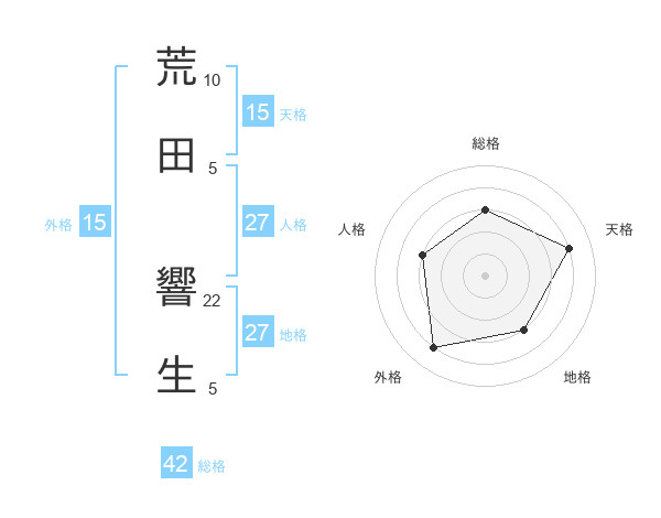 荒田 響生さんの天格は15画の4点!