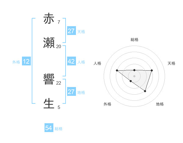 赤瀬 響生さんを姓名の画数から五運を鑑定