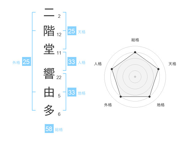 二階堂 響由多さんを姓名の画数から五運を鑑定