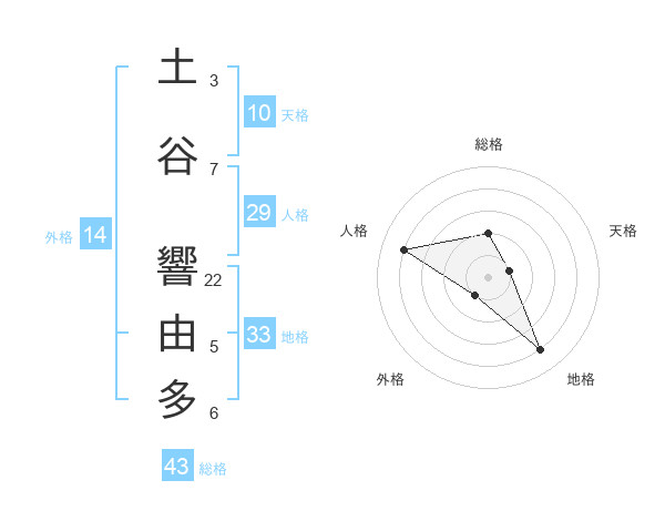 土谷 響由多さんを姓名の画数から五運を鑑定