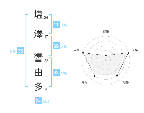 塩澤 響由多さんの総格は74画の1点!