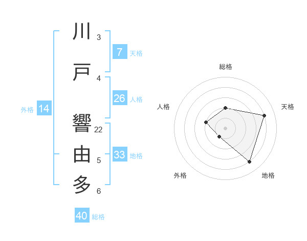 川戸 響由多さんの総格は40画の2点!