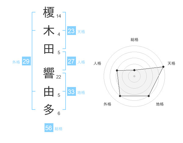 榎木田 響由多さんを姓名の画数から五運を鑑定
