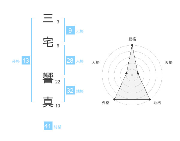 三宅 響真さんの外格は13画の5点!
