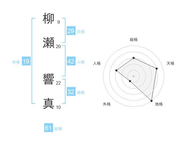 柳瀬 響真さんを姓名の画数から五運を鑑定