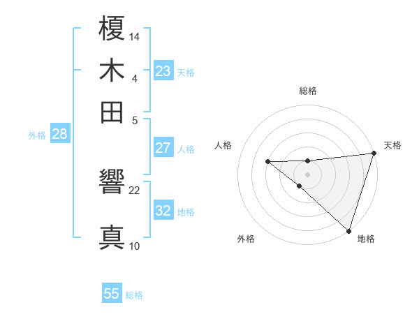 榎木田 響真さんの天格は23画の5点!