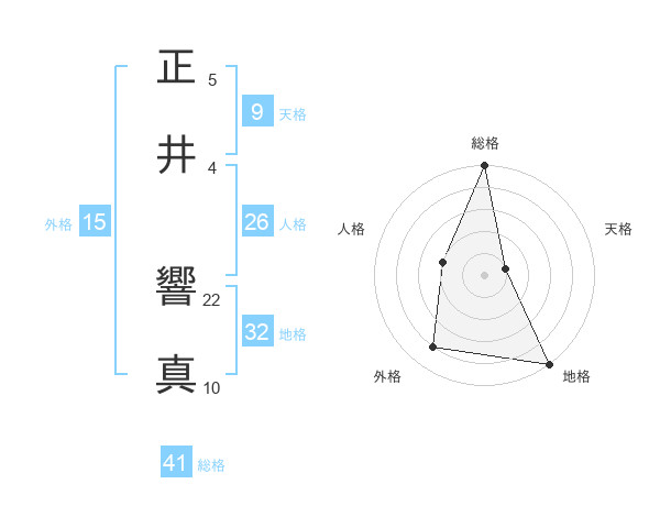 正井 響真さんの地格は32画の5点!