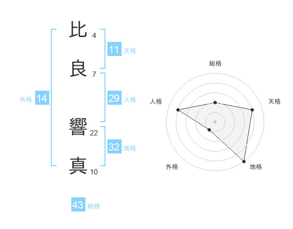 比良 響真さんの総格は43画の2点!