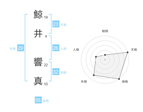 鯨井 響真さんを姓名の画数から五運を鑑定