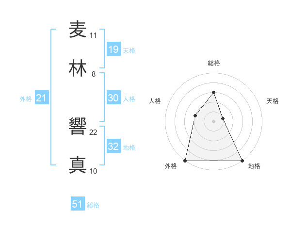 麦林 響真さんの総格は51画の3点!