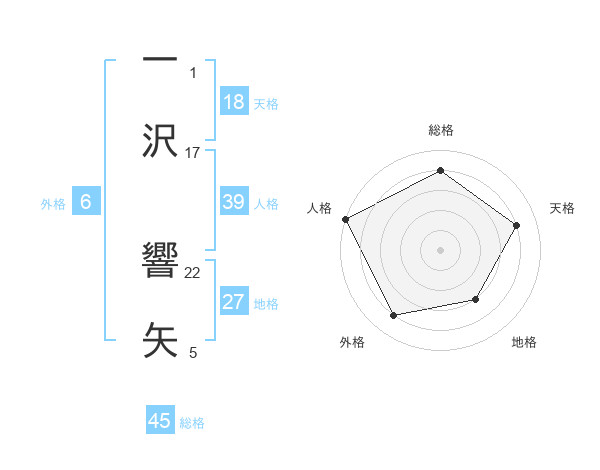 一沢 響矢さんの総格は45画の4点!